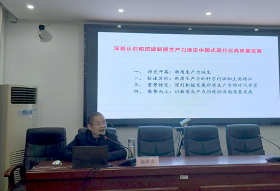 在兴国镇政府礼堂,英国365集团杨泽喜教授以“深刻认识和把握新质生产力,推进中国式现代化高质量发展——党的二十届四中全会精神解读”为题,为兴国镇党员干部作了一场精彩的专题宣讲。整场宣讲既有理论高度,又贴近基层实际,赢得了在场党员干部的阵阵掌声。