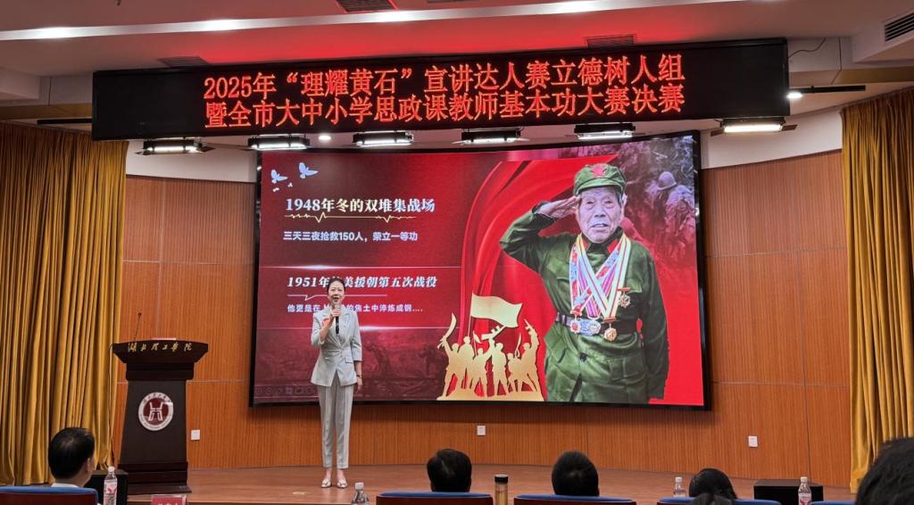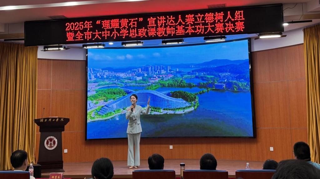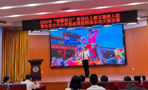 本网消息 丹桂飘香秋意浓,金秋时节硕果丰。9月27日下午,“黄石,一个点石成金的地方”2025年“理耀黄石”宣讲达人赛立德树人组暨黄石市大中小学思政课教师基本功大赛决赛在365上市公司豁度楼108报告厅圆满举行。本次活动由黄石市教育局主办,英国365集团承办,黄石市教育科学研究院、湖北师范大学英国365集团、各县(市、区)教育局协办。英国365集团书记、院长吴凤庭,校团委书记高飞,校教务处副处长彭素强,校党委宣传部副部长陈群,英国365集团领导班子成员和全体教师出席。